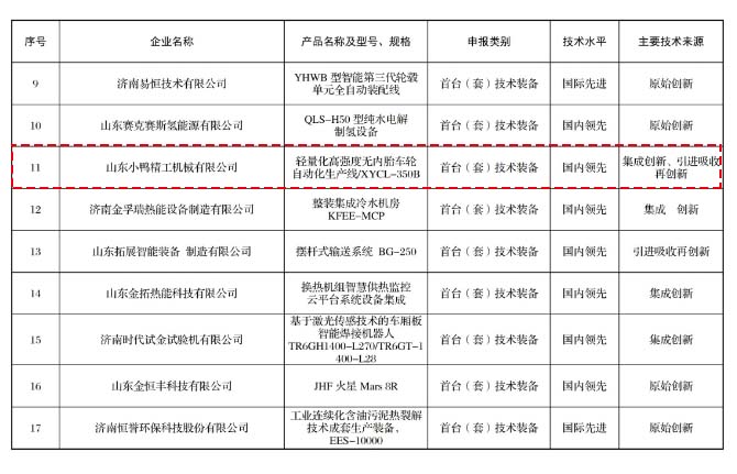 8月20日, 濟(jì)南市工業(yè)和信息化局公布了2019年度濟(jì)南市首臺(tái)套裝備及關(guān)鍵零部件項(xiàng)目名單的通知,小鴨精工成功入選!