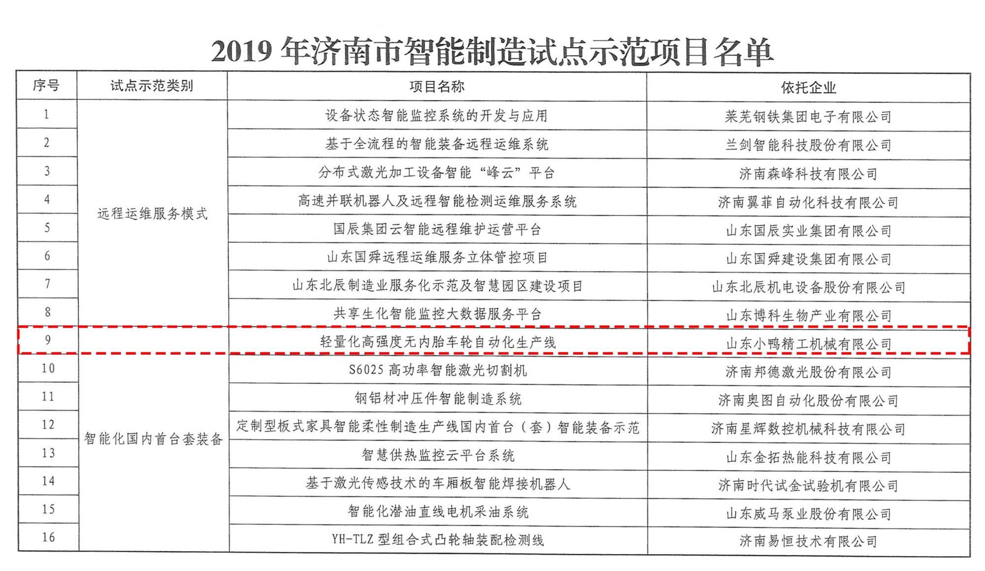 7月30日,濟(jì)南市工業(yè)和信息化局公布了2019年濟(jì)南市智能制造試點(diǎn)示范項(xiàng)目名單,小鴨精工榜上有名!