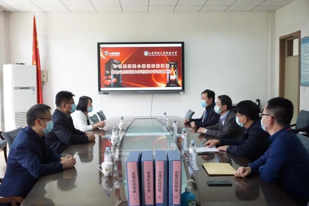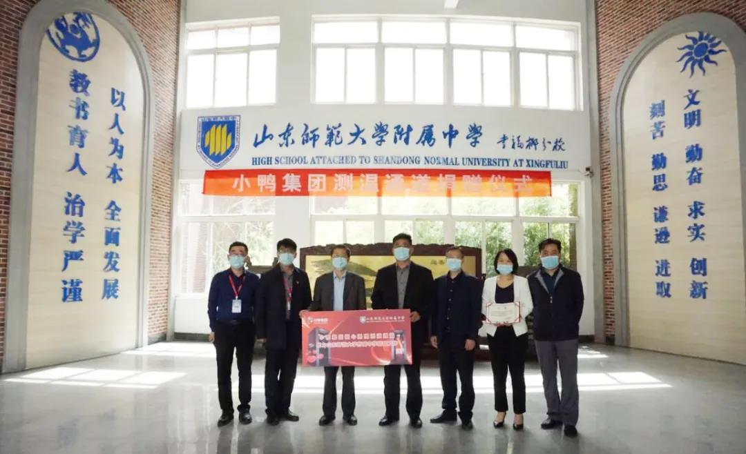 5月15日,小鴨精工機械公司將價值17萬余元的兩臺智能測溫通道分別捐贈給了齊魯工業大學和山東師范大學附屬中學,集團黨委副書記、紀委書記、工會主席邵紀華代表小鴨集團及小鴨精工親自將測溫通道送到兩所學校。齊魯工業大學(山東省科學院)黨委委員、副校長(副院長)曹茂永及山東師大附中校長荊兆晶接受捐贈并分別講話表達了感謝之情。